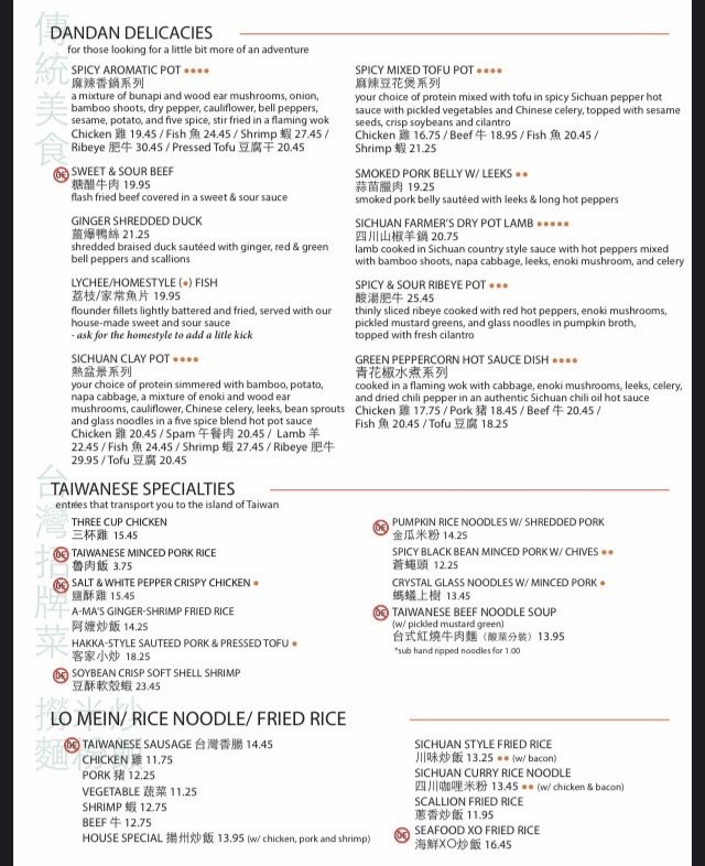 Dan Dan, located in Philadelphia, offers a menu full of Szechuan and Taiwanese delights, with a focus on bold flavors and intricate spices. With a trendy and casual ambiance, Dan Dan provides a variety of vegan and vegetarian options, making it a great dining spot for groups and families alike. Customer favorites include the iconic Dan Dan noodles, packed with flavor and a must-try for any noodle enthusiast. Other standout dishes include the shredded potato, pumpkin rice noodles with shredded pork, and the lychee fish. The house fried rice has also received high praise for its generous portion size and flavorful taste. Despite a bit of a higher cost for some items, the overall quality of the food and service make it a worthwhile dining experience. Whether dining in or ordering takeout, Dan Dan is sure to impress with its delicious and authentic Asian cuisine.